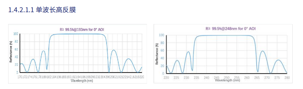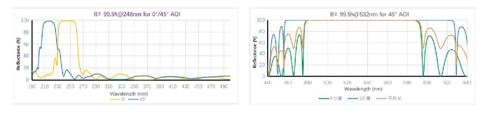 在光学薄膜中,反射膜和增透膜几乎同样重要。 对于光学仪器中的反射系统来说,一般单纯金属膜的特性大都已经满足常用要求。在某些应用中,要求更高的反射率则可用金属增强膜。而全介质多层反射膜,由于这种反射膜具有最大的反射率和最小的吸收率因而在激光应用和一些高要求的系统中得到了广泛的使用。