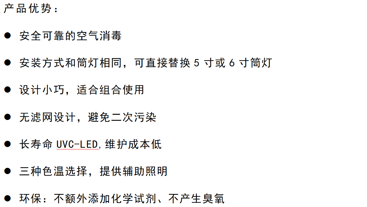 应用场景:卫生间、办公室、会议室、客厅、卧室、教室等小型空间(<=10m²,对于较大空间,推荐组合使用)