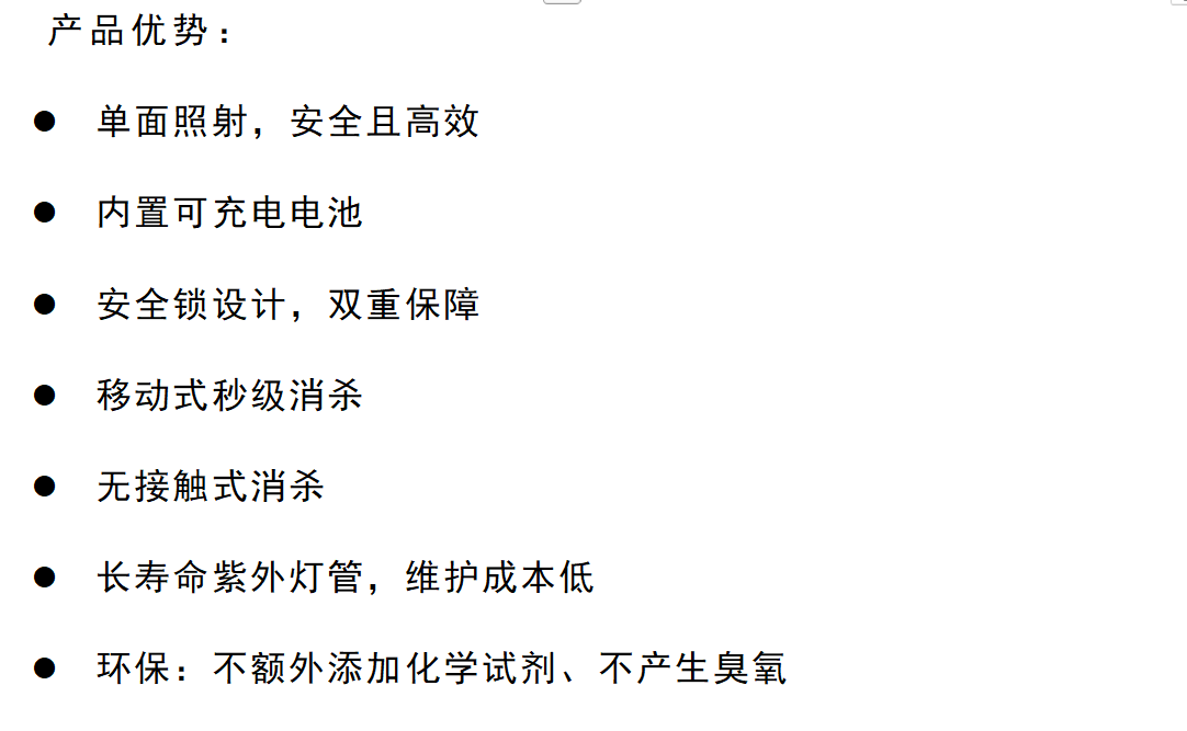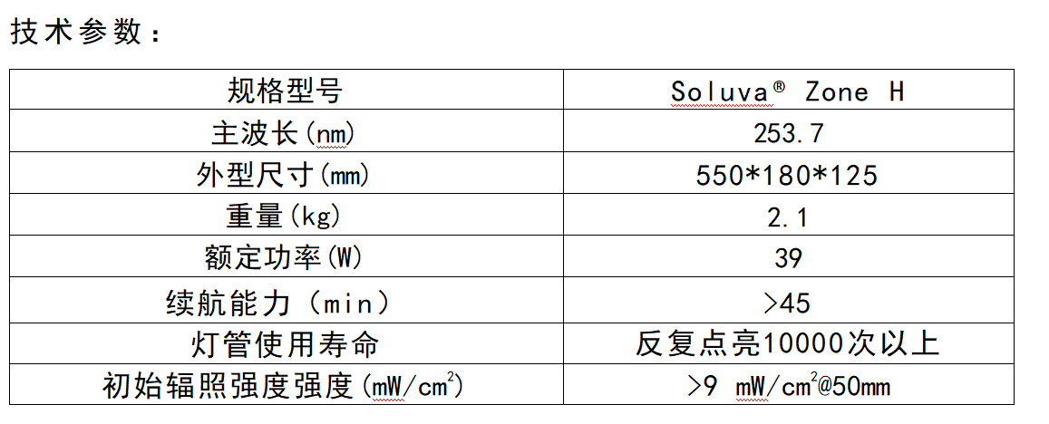Soluva® Zone H为手持式消毒设备,可对目标表面实现秒级无接触式杀菌。253.7nm紫外线搭配UVC高反射材料,精准破坏细菌病毒的遗传物质,实现细菌病毒的高效灭活。内置电池设计,让病菌消杀随心所欲。整个消毒过程绿色安全,无化学品添加,无臭氧产生。过流式杀菌技术可确保紫外线零泄露, 还你健康空间,无忧生活。