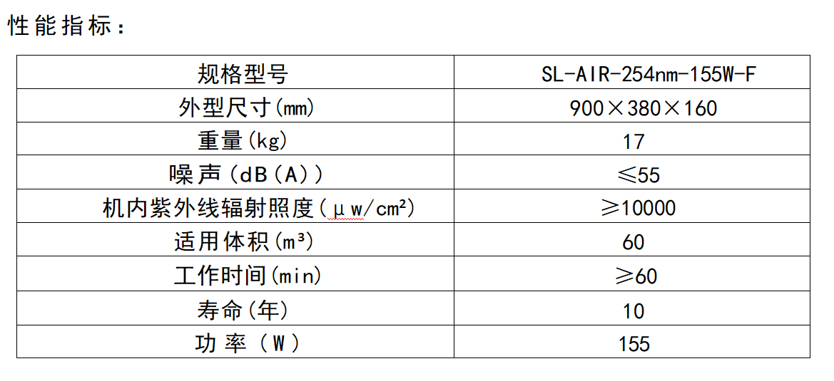 使用方法:壁挂安装于不大于60m3 的密闭空间内,在室温下,相对湿度不大于 80%的条件下,连续开60分钟以上,可达到空气消毒要求。
